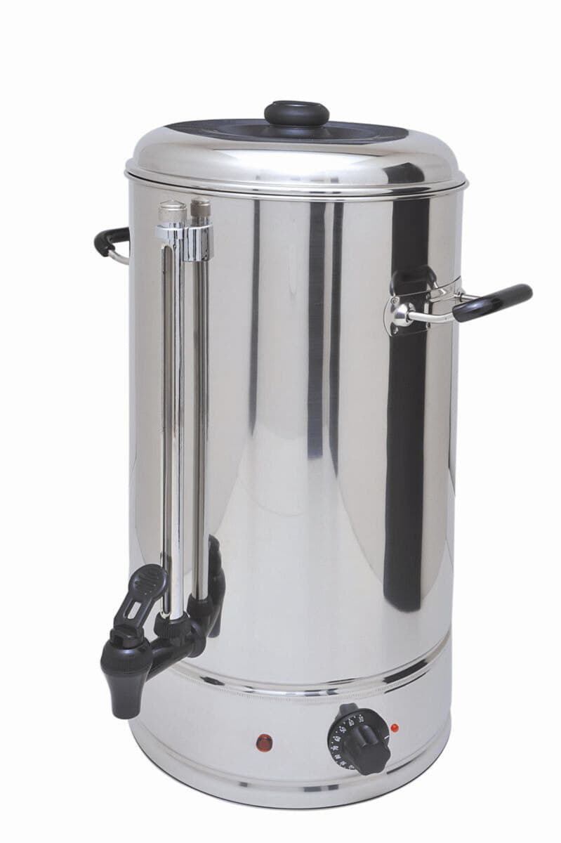 Изготовленный из нержавеющей стали, кипятильник оснащен аварийным термостатом и индикаторами, показывающими режимы «Нагрев» и «Поддержание температуры». Механический регулятор температуры позволяет устанавливать диапазон от +30 до +100ºС с шагом в 5ºС.