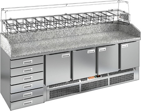 Стол холодильный HiCold PZE4-1111/GN представляет собой высококачественное оборудование, предназначенное для профессионального использования в сфере общественного питания. Этот модельный ряд включает в себя четыре двери и шесть выдвижных ящиков, что обеспечивает удобный доступ к продуктам и их хранение. Температурный диапазон внутренней камеры варьируется от -2 до +10 градусов Цельсия, что позволяет поддерживать оптимальные условия для хранения различных продуктов.
