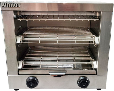 Тостер-саламандра Airhot HST-270 представляет собой идеальное решение для равномерного подогрева и обжаривания готовых блюд, таких как сэндвичи, бутерброды, хлебобулочные изделия и пицца, в кафе, ресторанах и других заведениях общественного питания. Эта модель обладает горизонтальной схемой загрузки и оснащена двумя переключателями для настройки температурного режима, а также таймером на 30 минут без функции автоматического отключения.